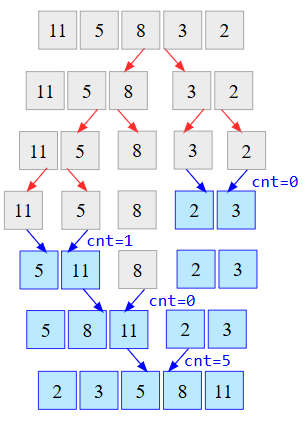 int ans = mergesort(l, mid, buffer) + mergesort(mid, r, buffer);