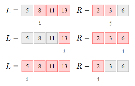 Because both sides are sorted, we can use two pointers to find the boundaries where the inequality condition holds and count multiple reverse pairs at once. To ensure we count each pair only once, we adopt a consistent counting direction: 1) for each element in `L`, count how many elements in `R` satisfy the reverse-pair condition, or 2) for each element in `R`, count how many elements in `L` satisfy the reverse-pair condition.
